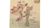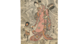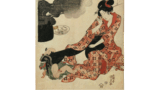 種々の解釈や想像説がこの図に付されていますが、国芳の発想および取材源は、明らかに山東京伝作・初代歌川豊国画の読本『善知安方忠義伝』(文化四)挿絵の数場面です。天慶の乱に誄されたf将門の遺児滝夜叉姫が、亡父の遺構、下総猿島の相馬の古御所に龍もり、妖術を修得して謀叛の将兵を集める企てを、智勇の士大宅太郎光国が挫く筋立で、その古内裏の場面には、破れ御簾、属難の乱戦などが描出されています。弘化頃からしだいに増大する国芳の奔放な想像力は、この幻妖味濃い題材にヒントを得て、三枚続きというワイドスクリーン形画面一杯に跨がる大爛難の怪へ発展させ、その奇想は兄る者を瞳目させる。しかし荒唐無稽に見えるこの屑雌の姿には、意外に西洋解剖学書を参照したらしい正確な描写を見出し、却てその斬新さに驚かされます。前面の歌舞伎がかったポーズの人物たちと対比して、その精緻な自然科学的な取り扱いが、さらに冴えて感じられてくる不思議な作品です。