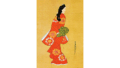 現在の山梨県南巨摩郡身延町を描いたもので、身延町にある身延山には、日蓮宗の総本山久遠寺があり、川沿いの道は、甲斐国と駿河国を結ぶ通りで、身延山への参詣道であったことから身延道とも言われていました。身延山に入る道すがら渓谷越しに見える富士。身延山久遠寺を訪れる人々と、その背景に流れる富士川。更にそびえたつ山々が荘厳な雰囲気をもって描かれています。色のバランスの美しさも絶妙です。