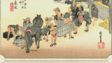雪月花は、四季の変化に富む日本の伝統的な自然美の象徴。早くから画題にとられ、また三つ組みや三つ揃いの趣向として見立てられます。浮世絵には類例がはなはだ多く、掲出図もこの見立系列に属します。それぞれ職種を異にする三美人を配して変化を図り、花は町芸者、月は花魁、雪は辻君を描きます。爛漫と咲く桜花の下、延鏡で顔をなおす芸者の姿が荊郷つぽい。図案化した干鳥を散らした裾模様が、いかにもこの女性の好みを表し、江戸前の機知のなかに思わぬ近代味を見せておもしろいです。特に顔つきが写生にもとずいたらしく、ふしぎな個性味を宿しています。花魁は月下弾琴図の当世風見立のおもかげが見られます。打掛けの萩の総模様が月光に映える萩の野を思わせます。辻君は本所吉田町辺の者ですか。白手拭いをふきさらし、つぼめた破れ傘を片手に、辻行燈の前に雪を踏んで立った姿は、文化期特有の凄艶味を発揮しています。