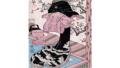 国安の感受性は鋭いです。筆も切れるように立ちます。その彼が、文化末年、最も脂の乗り切った時期の制作で、おそらく彼一代の傑作と見られる雪月花の三幅対をここに紹介します。題材に選ぶ美人や背景に彼ははなはだ気をつかったあとが見えます。花は隅田の夜桜に芸妓、その襖橋付近の情景から、いわゆる「上手」と称される隅田川上流のあたりらしいです。ものういような春の朧夜の風情をここまで描き込んだ作品は他に求めがたいです。はらはらと散る花びらにも詩があります。月は川をずっと下にくだった鉄砲洲付近、佃を望む水上の笞舟に一人月を眺める船饅頭。夜寒に懐手して襟にあごを埋めたじだらくなポーズが何ともいえず、風情と凄味とを渾溶した作品。月光に映える海面の描写も迫真感があります。雪は吉田町辺の夜鷹でしょう。抱えた菰にそれと知られます。踏みしだいた雪上の下駄のあとに寒さを感じ、夜鷹のポーズもよいですが、前二図の卓抜さの前には一等を輸します。雪の降り方の規則的な描写がこの絵の感銘を幾分薄めています。