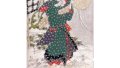 国丸は気っぶのいい人だったらしく、どの絵にもどこか淡白さが見えます。外見は粗に、内に洗練された美意識を宿す末期江戸前美人の気性といったものが、彼の美人画には隠顕しています。当図もその一つ。裾模様を施した簡素な黒の着付けですが、角張った帯、爪立てた足先とともに、リンとした意気を感じさせる文政美人がここに見られます。梅の枝を墨絵風に描いたのも一興。目先の変化を狙ったらしいです。その巨大な枝振りから見て、亀戸の弑刳原でしょう。この香りも江戸前美人と通うものがあり、取り合わせがよいでしょう。縁先に置いた盃洗めく焼物には、白抜きの文字で「蜀山人 みゃこどりく□□(二字難読。とてヵ)すみだ川」と記し、字体も蜀山人の筆に似ています。美人の裾模様が、ちょうど流れに遊ぶ都鳥を描き、この句と呼応して江戸情調を何となくかもし出しています。