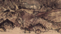 順調に過ぎる程の制作を続けるこの期の豊国の制作態度をうかがうに適した好資料を、ついでに紹介しておきたい。彼の合巻画稿の貼込帖が存しており、内容は絵柄から見て『お杉お玉二見之仇討』『桜姫筆再咲』他二種ほどからなります。各丁の絵組みのデッサンが見られ、たとえ作者からの下図の指示によったにもせよ、構図原案を決定するまでの心の動きがくみ取られ、決してなおざりにしていない事実が立証される。しかも、文化四年の初期作品『二見之仇討』の下描きと、それから四年をへた同八年の『桜姫筆再咲』、さらに文政八年の『仮名手本増補忠臣蔵』のそれぞれのデッサンに、制作態度の手抜きを見ず、その姿勢には敬意が表される。