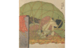 題名は中国の伝統画題、蕭湘八景の江戸的なもじりで、内容もこれに伴う当世女性風俗の見立構図となっています。洞庭秋月・平沙落雁・江天暮雪・煙寺晩鐘・山市晴嵐・漁村夕照・遠浦帰帆とそれに本図の八枚からなります。文政期の秀作。