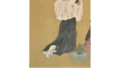 「美女競」は「みめくらぺ」すなわち眉目佳き美人のコンクールシリーズと洒落た意と解して、こうよんでみました。英泉が文政五年頃制作した美人大首絵集中でも白眉の画集で、中で一きわ傑出している図が、この蚊帳を出る美人です。