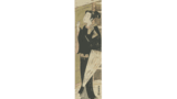 芳員は国芳門下では注目される人物です。一寿斎を号しましたが、一川号の作の方が多く目にはいります。開港当時から慶応年間にかけて横浜に住んだと伝えられ、その故か、外人生活取材の錦絵が多く、貞秀と並ぶ横浜絵作家です。ただ、異国人の顔貌描写に一律の嫌いがあり、しかもどこか日本人めいた面影を残して、一種の愛嬌があります。彼の横浜絵は異国人の行動や目を惹く器物を扱ったものが多いです。群像描写を好んだようですが、ここではむしろ個人や器物に焦点を置いた作品「横浜見物図会」に彼の技倆をうかがうことにしました。右半上部の「写真鏡」は現在の写真のことで、外国婦人の写真を紹介したものですが、むしろ美人画として鑑賞されます。右下半はアメリカの時計を写実的に描いた旨を「真写」の字で誇っているが、文字盤の数字は、いささか怪しいです。左半は外人の散歩姿。簡素なステッキを提げて、ぬうっと立った風貌が面白く、手にした葉巻の煙の形が何か不自然めく欠点はありますが、新奇な知識の報道役は十分に果たしています。
