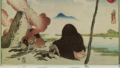 この図と同じ趣向で描かれた作品に、「西駅た印」「芸国と印」がわかっています。そして「は印」とか、「た印」というのは、描かれた女性の名前の最初の一宇で呼んだ撒劃であろう。「南駅」は、清長などが「美南見」と洒落た品川のことです。湯上がりでくつろぐ女性、は印とは誰のことでしょうか。当時の人々であればすぐ誰とわかったことも、今日では見当もつきません。