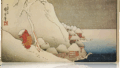 本図は、画中の「風すずしそののしおりや難波かた」という文字によって、難波屋おきたをモデルとしたものと考えられます。前にも述べたように、当時の人気女性の中でもおきたは、歌麿好みの女性であったためか、彼女をモデルとした作品を十数種も描いています。また鏡を扱った作品も多いですが、同趣向の図「姿兄七人化粧」にくらべますと、この作品がやや散漫な印象を与えるものになっていることに父付くであろ 顔をやや突き出して鏡に兄入るおきたの表情は巧みに描かれ、はじらいを示したような手の描写も有効な働きを示していますが、衣服の線描がややデッサンの正確さに欠ける面があり、観念的な表現となっています。しかし顔の表桔や髪の生え際の彫りはますます精巧なものとなっています。