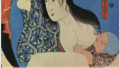 ’しめじ″という髪型の毛先の細かい彫りの美しさが、この図の印象をより強力なものにしており、年増の美しさを描いた傑作といえます。本図には、浴衣の模様に大きな絞りを描いた図があり、渋井清氏は本図を異版とされていますが、私には、本図が最初の摺りのように思われます。