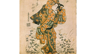 三味線の枯古に、また談笑の一刻をすごす、開放された水商売の女性たちの日常風俗ですが、歌麿は無背景とし、わずかに水盤を描いただけで、彼女たちの風俗や姿態美を描こうとしています。ことに三味線をもつ二人の女性の振り袖や単衣の描写では、藍または黒の陰彫を思わせる彩色によって、立体感、重量感を表現するとともに、夏の薄い布の質感さえ感じさせる描写法をとっています。