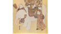 大雪のあと、雪どけ水に水かさを増した川に一般の舟がつながれ、垂直に立てられた擢に一羽の白鷺がとまります。岸には雪持の柳の枯木が重たげに枝をたれ、あたりのしじまを破るように、もう一羽の鷺が飛び立つところ。。きめこみ’の技法によってふっくらと紙地を盛り上げた雪や鳥の表現が、白一色にまぎれやすい画面を救っています。