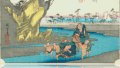 今、その原本を何によったかは明瞭に出来ないが、戴進(宣徳年間活躍)あたりの画風によったと思われる。図中に「光沢王府珍玩之章」と読まれる鑑蔵印や、その他印文不明の二穎が認められる。いわば雪舟在明期間の、修業中の制作態度を知るに良き資料てある。