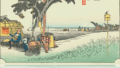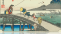 李唐は十二世紀前期、宋朝画院に活躍した画家であった。夏圭より少し早く徽宗皇帝の作った画院に入り、画院待詔となり、郭煕等と共に、院体山水画風のもとを築いた画人として著名である。いわば夏圭のもとという意味で、雪舟も敬していた画家の一人であった。しかし夏圭の画様とは異なり、画面のどちらかに広く開けてゆく空間と解放的気分が漂っているのが特色であるが、それをいち速く掴んでいるわけで、やはり雪舟が中国画摂収の一方法として、構図的展開で李唐の画風をここに学んでいたことがわかる。樹木、竹林、水、土埃に、そして人物への僅かながらの賦彩は図に生気を与え、雪舟が見た李唐画の新しい感覚が彷彿としてくる。ただ古画の模写という面でこれを捉えたのではなく、彼流に解釈して捉えているところに、雪舟の偉大さがある。