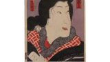 木戸の門扉を両方に開いた構図は開巻の絵としてはふさわしい。大名行列が毛槍をたかだかと立てて今しも橋を渡ろうとしている。なにからなにまで新しい続絵の発足である。