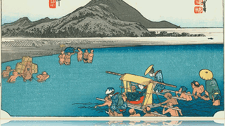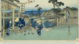 街道はゆるい丘陵へ続く。街道に軒を並べる茶屋、茶見世の客引き女が旅人の袖をひいている。江戸を立って神奈川泊りは楽旅の一日の行程だったという。