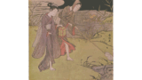 この絵も上り下りのすれ違う旅の心が描かれているからこそ私たちの感情に何かを与えているといえる。その点で左手のとり入れのすんだ田圃をいく百姓の姿も見のがすことは出来ない。