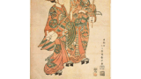 大小二つの相似する鳥居を絵組みの中心に据えていて、大きい方の鳥居からは、富士が望めます。この鳥居は、現在の千葉市にある、登渡(とわたり)神社のものです。したがって、その神社の鳥居として神の在りどころを知らしめるのが、本来の役割です。ところが、視点を変えると富士の鳥居でもあることが絵の趣とされているのです。つまり、絵の中の登場人物達は登渡神社前の海岸で潮干狩りなどをしているのですが、浮世絵を見る庶民には、富士前方の海岸で潮干狩りをしていると映るのです。