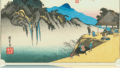 現在の千葉県千葉市の登戸浦を描いたもので、当時は江戸湾の湊で江戸築地に荷揚場を持ち、年貢米や海産物を房総半島から江戸に海上輸送する拠点の一つでした。また、このあたりの海は遠浅朝で潮干狩りの好適地として知られていたところでした。画面中央に置かれた神社の大きな鳥居越しの遠景に富士山が望めます。ここでも働く人が生き生きと描かれています。