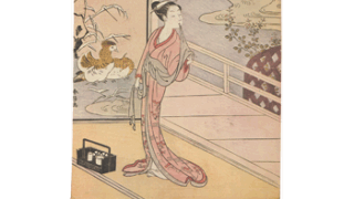 現在の神奈川県横浜市保土ケ谷区岩井町を描いたもので、東海道の宿場としても有名な保土ヶ谷を描いたこの作品は、富士を眺めながら東海道を旅する楽しさを教えてくれます。松並木を透かして見える富士、そこを行き交う人々。江戸の人の生き生きとした様子が、北斎の絶妙な筆使いによって描かれています。また、本作は、フランス印象派の画家モネの名作「ポプラ並木」に影響を与えたことでも有名です。
