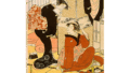 明和四年(1767)正月、中村座上演の『初商大見世曾我』に出演した四代目市川団十郎の景清を描くものと考証されている(吉田暎二氏)。娘と妻を枷にして口を割らせようとする畠山重忠、青山の琵琶と青葉の笛の所在を知ろうとして牢獄の景清をせめあぐんでの凶行であります。ことここにいたって悪七兵衛金剛力を揮って牢を破るという、怪力無双の見せ場でしょう。