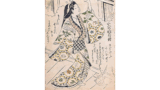 この美人図は、小僧をお伴に外出した女が、汗のにじむ暑さで、風そよぐ柳の下に愁い、涼を納れたあと、帯をしめなおすというた風姿を写すものでしょう。スターン博士も指摘するようにデリカシーの少ない少々品の悪い女でしょう。また同氏はこの絵に湖竜斎の影響を検出している点も私は大いに興味を覚えるところで、直接の師匠春章のあの卓出した肉筆の技量にくらべますと、師風がほとんど認められないのに留意して、春英画の判断をしなければならないでありましょう。