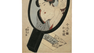 春信の笠森お仙の茶屋図などに団扇をうるところが添景となっており、その団扇絵には表に俳優の、うらにその紋所を誌したものがあって、芸能界が大衆の人気を博していたことを知るのですが、大首絵という発想はこんな形態からも起こったことです。